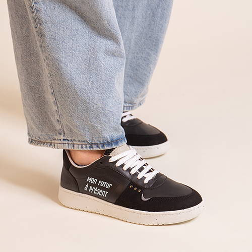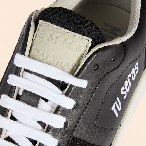"I’m thrilled to share this project that truly reflects who I am," says Emma Daumas. "Every design I create combines aesthetics and meaning. This collection was inspired by a phrase from my song Tu seras, a little thought to carry with you. And because I care about my values and the planet, I chose ME.LAND to craft a 100% vegan, 100% recycled, locally made sneaker."